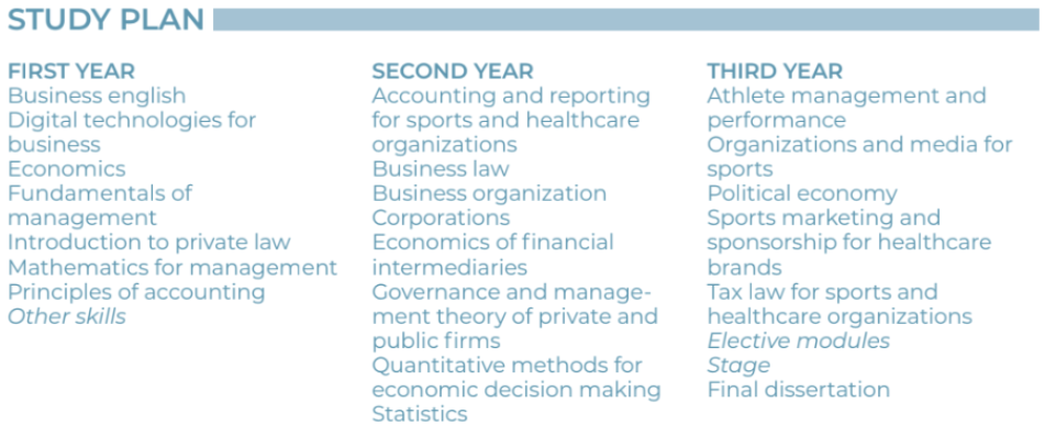 The Bachelor’s Degree in Sport Management (L-18) is designed for students who wish to combine a solid education in economics and management with a specialized focus on the sports industry.